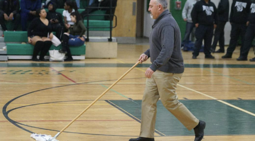 Brentwood AD, Kevin O’Reilly, going the extra mile and cleaning his basketball court this week!