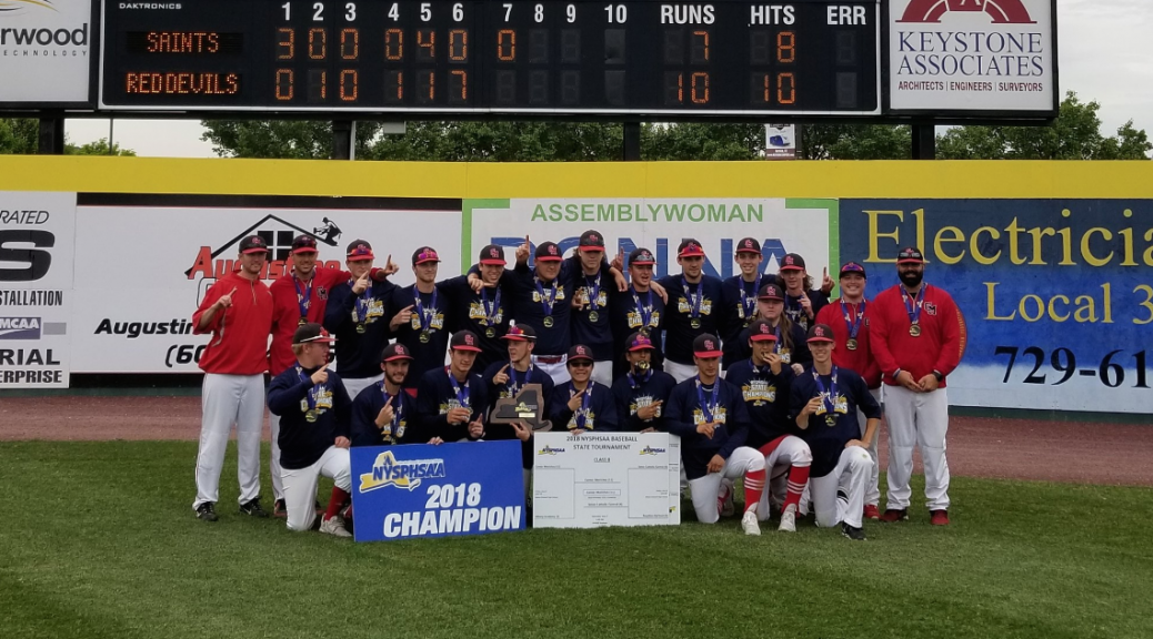 This was the first state baseball title in Center Moriches history. The school also won a state title in soccer in the fall.