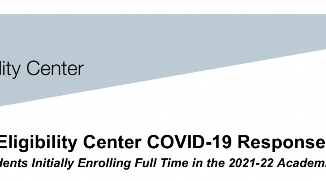 Given the continuing impact of COVID-19 on the educational environment, the NCAA Eligibility Center has partnered with the NCAA membership to identify the following changes to the initial-eligibility certification process for students who initially enroll full time in a collegiate institution during the 2021-22 academic year.