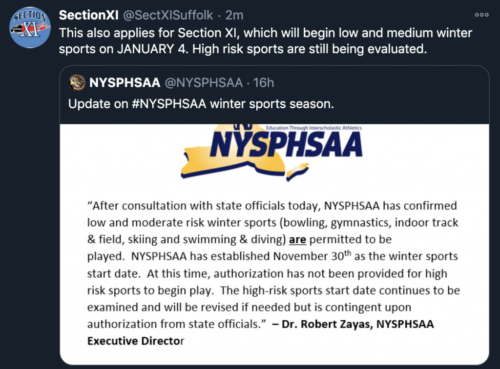 Update on Section XI Winter Sports