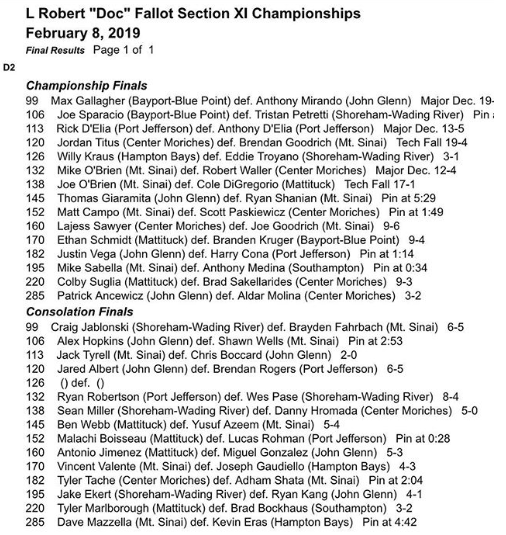 Dr. L Robert “Doc” Fallot Memorial Suffolk County Division 1 Wrestling Championship